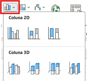 Mas esses atalhos não são a melhor opção, pois não permite você escolher o tipo de gráfico primeiro.