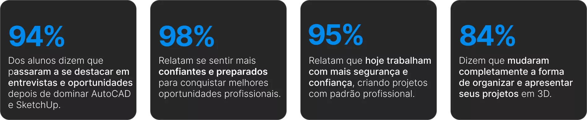 O Curso Online de AutoCAD e SketchUp foi criado para você dominar as principais ferramentas de projetos e modelagem 3D de forma 100% prática, economizando tempo com aulas diretas e objetivas.