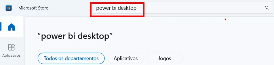 Na barra de pesquisa da Microsoft Store, digite Power BI Desktop e pressione Enter.
