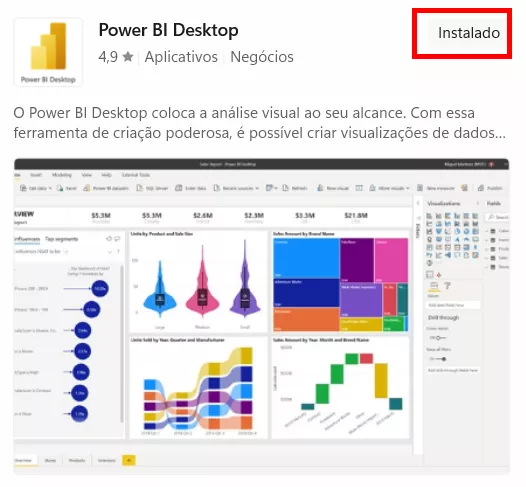 Passo 3: Selecione o aplicativo oficial Power BI Desktop clicando em "Instalar"