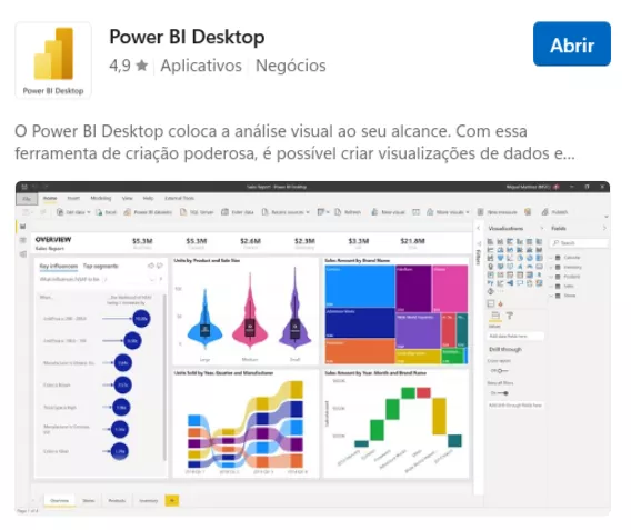 Uma das grandes vantagens do Power BI Desktop é que ele pode ser baixado e utilizado gratuitamente, o que torna a ferramenta acessível para estudantes, profissionais em transição de carreira e qualquer pessoa que queira aprender análise de dados sem investimento inicial.
