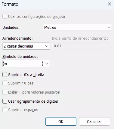 Clicando em "OK", já teremos as unidades de distância ajustadas no projeto. Essas configurações podem ser feitas também para qualquer outra unidade, de acordo com a necessidade do projeto.