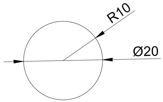 Neste quatro exemplo, temos as respectivas cotas de raio e diâmetro