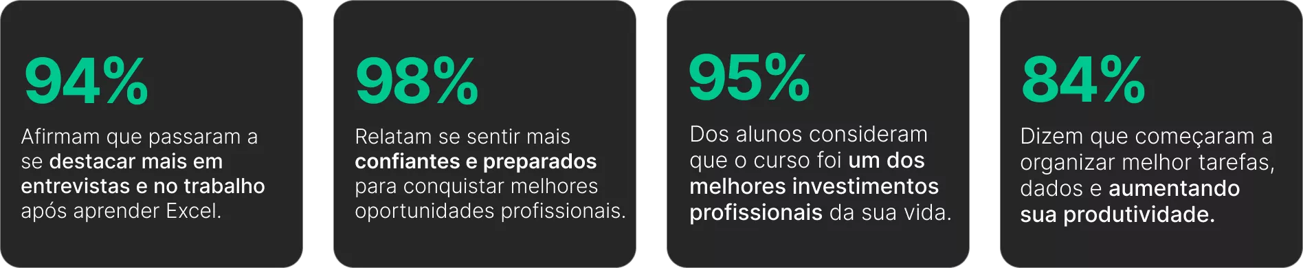 O Curso Online de Excel foi criado para você dominar o Excel de forma 100% prática, economizando tempo com aulas diretas e objetivas.