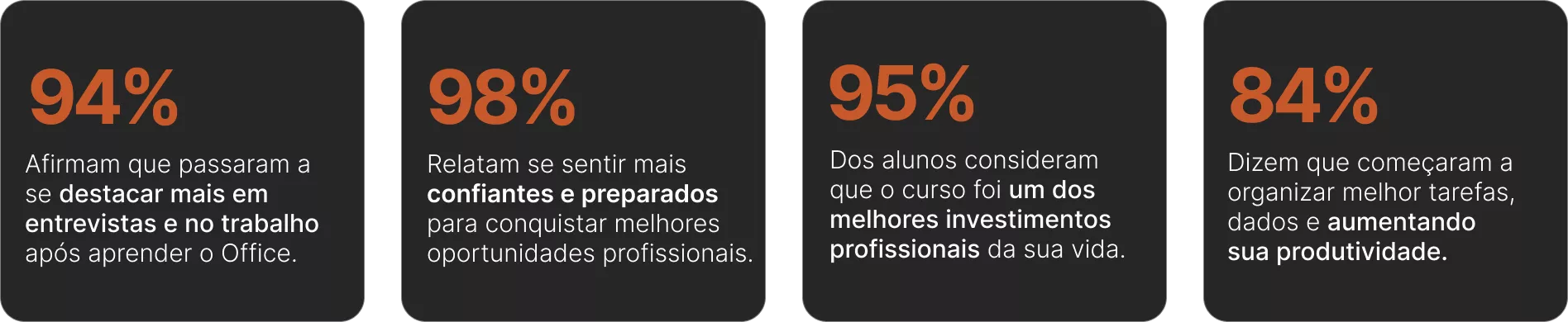 O Curso Online de Pacote Office foi criado para você dominar o Excel, Word e PowerPoint de forma 100% prática, economizando tempo com aulas diretas e objetivas.
