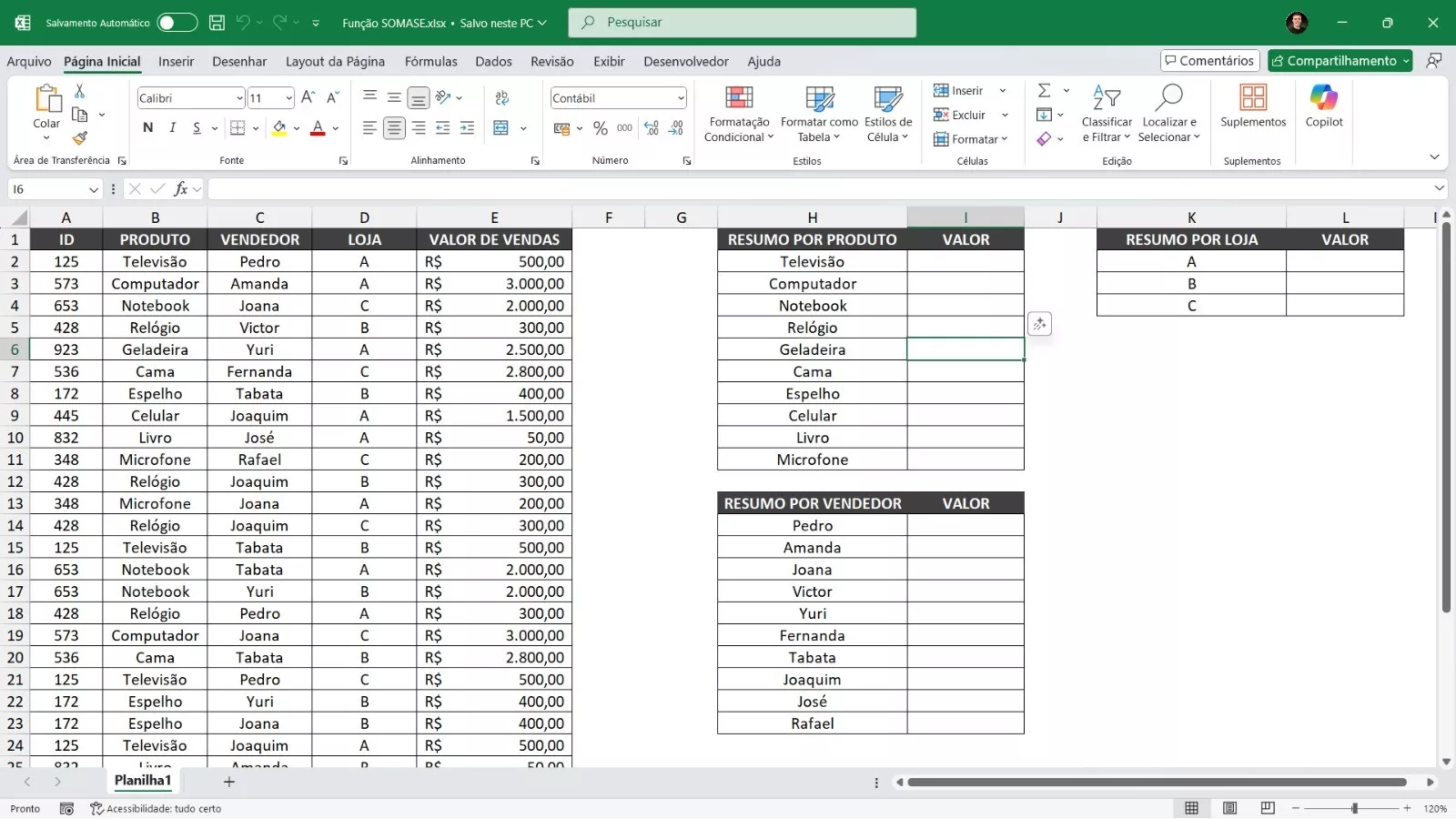 Funções avançadas e financeiras (SOMASE, SE, E/OU, PROCV, PROCH, PROCX, SEERRO, SOMARPRODUTO, ÍNDICE, CORRESP).