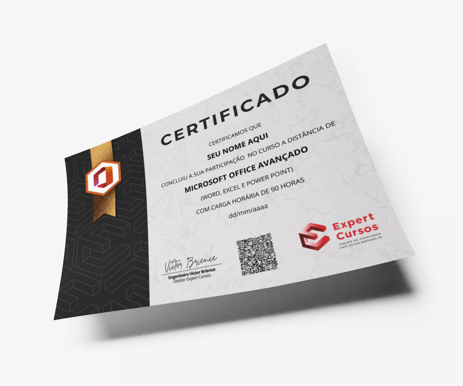 Você vai do básico ao avançado, com exercícios práticos em cada aula. Conta com uma área de membros exclusiva para tirar todas as dúvidas diretamente com o professor e ao concluir o curso você recebe um certificado reconhecido de capacitação profissional.