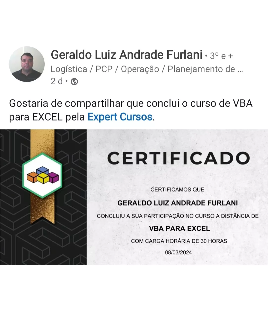 Você vai aprender tudo sobre Python, SQL e VBA do Básico ao Avançado e com Certificados Reconhecidos como capacitação profissional com carga horária de 90 horas, uma Área de Membros exclusiva onde você pode tirar todas as suas dúvidas com nossos professores.