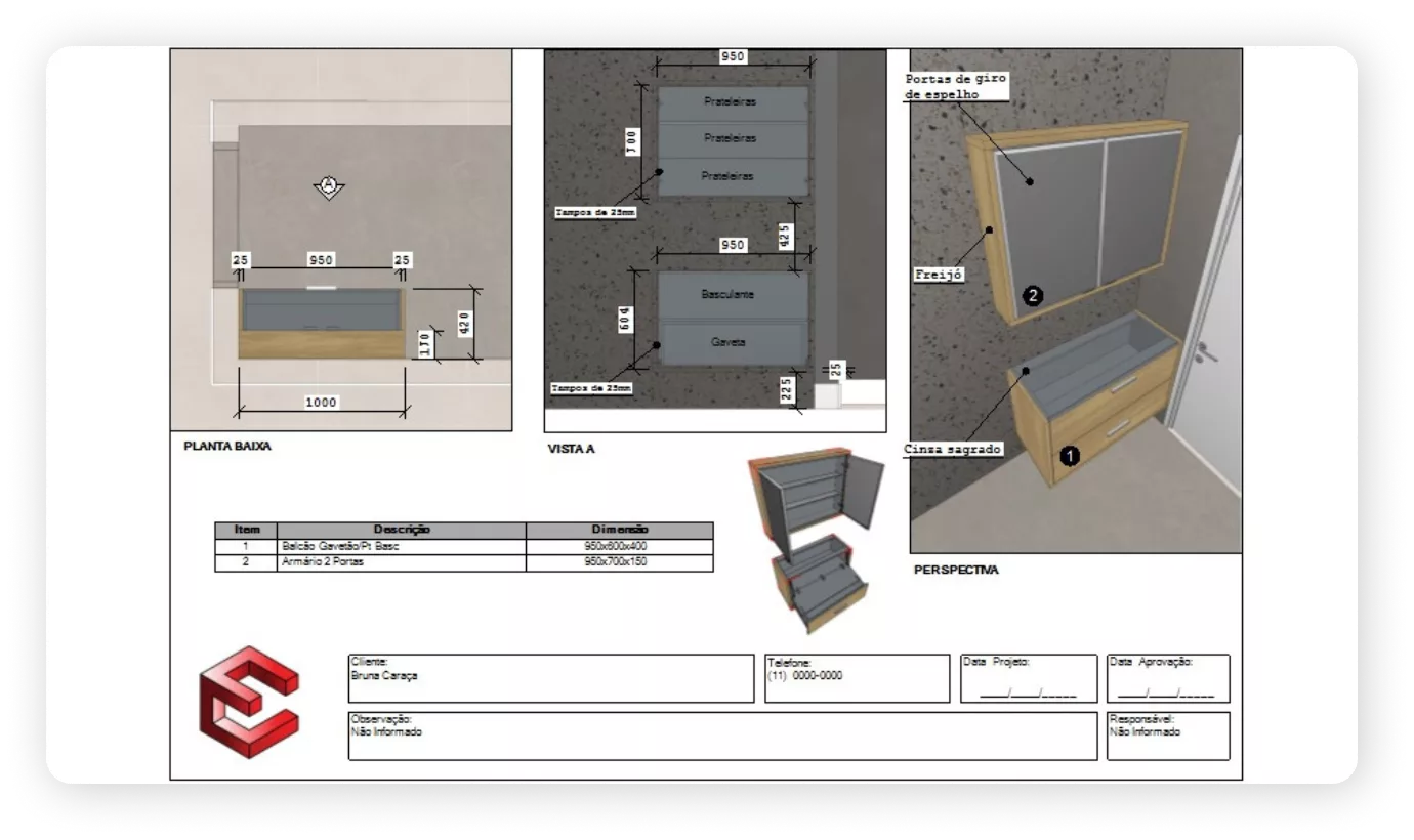 Durante o curso desenvolveremos Projetos Completos, desde os Primeiros Passos até o Plano de Corte, Documentação, Impressão e Renderização.
