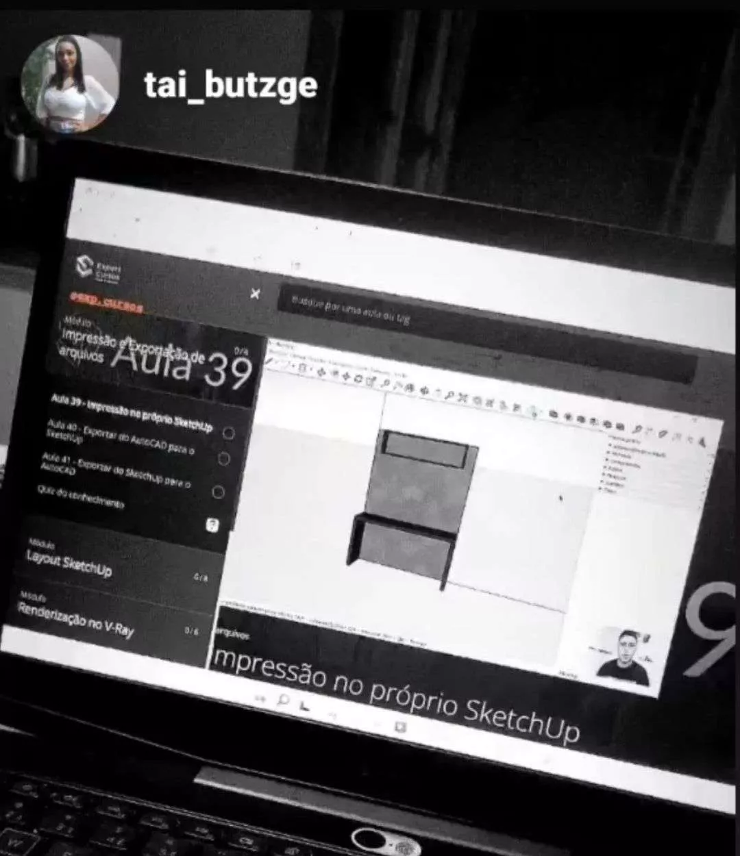 "Eu já tive uma experiência com a Expert Cursos, já tinha realizado outro curso deles e gostei bastante, e agora por gostar de interiores, plantas e móveis eu estou fazendo o Curso de SketchUp. Achei a interface muito bacana e fácil de fazer as criações, além das aulas serem didáticas e com uma sequência muito boa, também tem uma apostila cheia de exercícios."