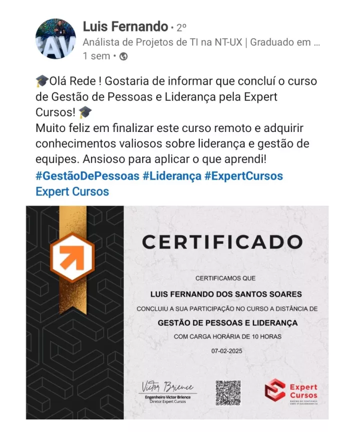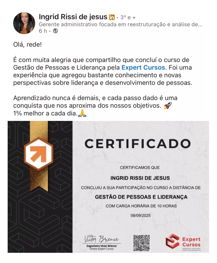 A Expert Cursos nasceu com a missão de levar conhecimento de qualidade e acessível para todos os cantos do Brasil e do mundo. Hoje, já somos referência em educação online, com mais de 85.000 alunos formados em cursos certificados e uma comunidade de mais de 100.000 inscritos no YouTube, que aprendem diariamente com nossos conteúdos.